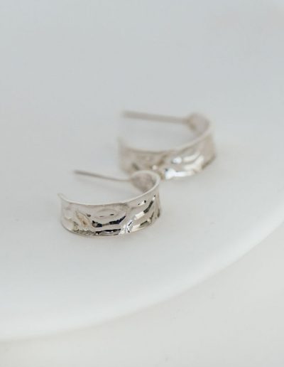 The Afterglow Hoops feature a 10 mm wide design with a 15 mm diameter. Their softly textured surface reflects how life shapes and refines us, each mark part of what makes it whole. A reminder that even through change, something beautiful remains.
