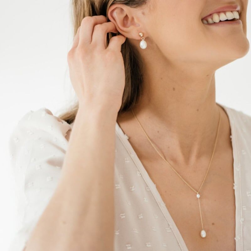 The Anchor Drop Earrings feature a teardrop freshwater pearl attached to a 9k gold or sterling silver ball at the ear. The pearl, shaped like a sinker, symbolises your steadfast anchor in a specific place. May these earrings remind you of Christ, in whom you are firmly anchored.