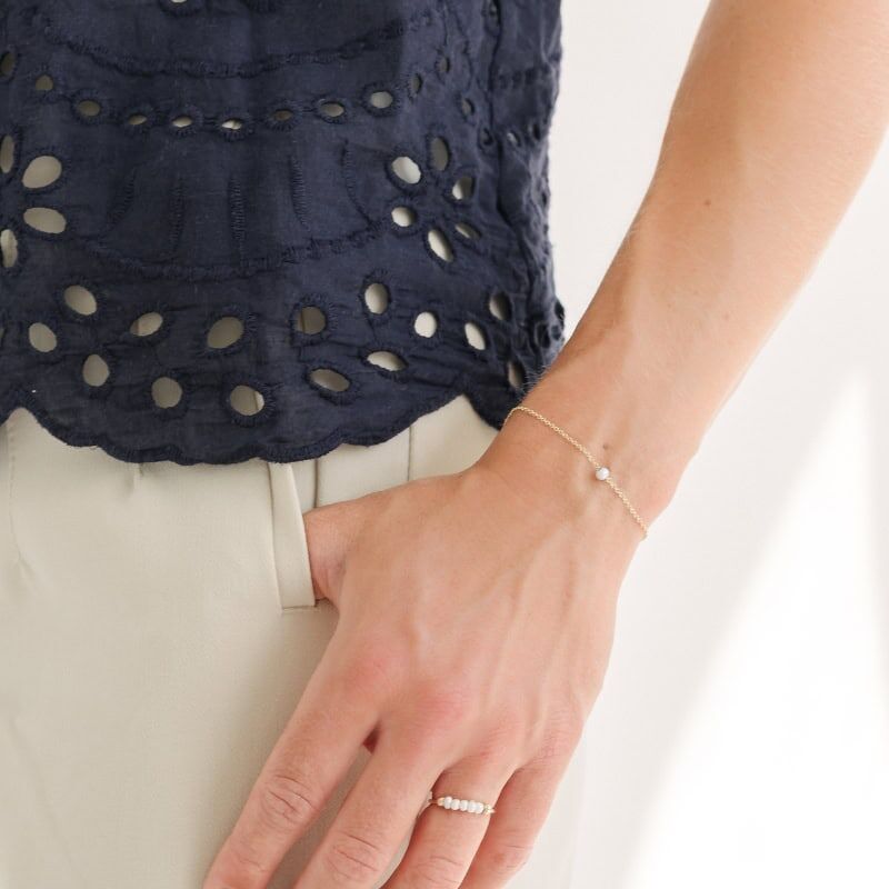 Our Dainty Floating Pearl Bracelet features a single 4mm freshwater pearl that rests delicately on a fine solid gold or sterling silver chain.
