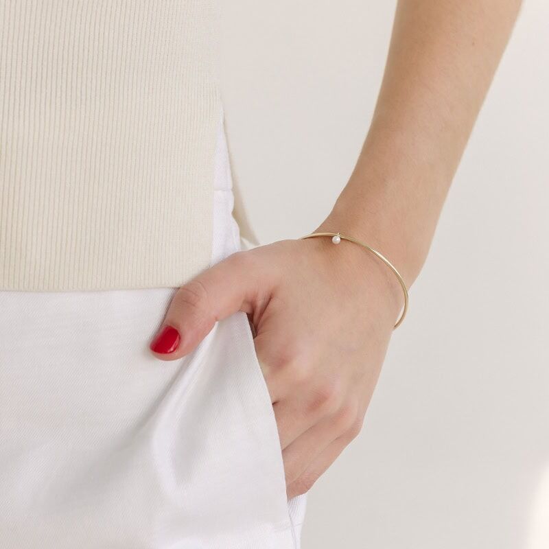 This bangle is a perfect addition to any pearl lover’s collection, effortlessly complementing both casual and dressed-up looks.