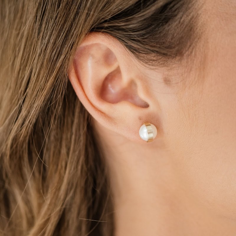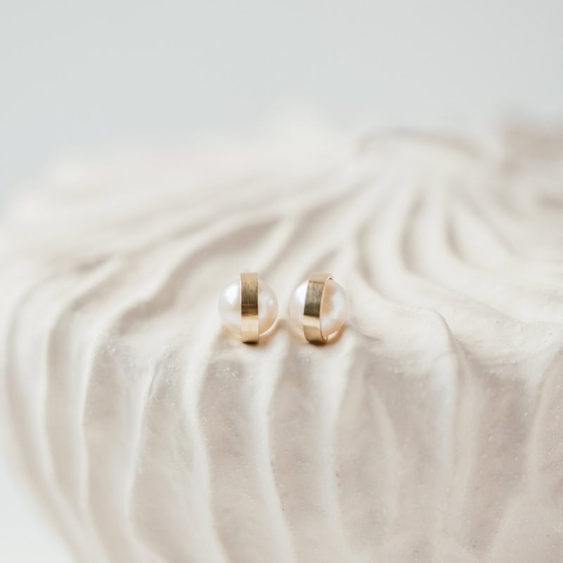 The Feather Pearl Studs feature a round freshwater pearl gently wrapped in a delicate 9k gold or sterling silver bar. They are as fine and dainty as a feather on a bird’s wing. May the softness of the earrings remind you that God is in control and that you can always find shelter under His wings.