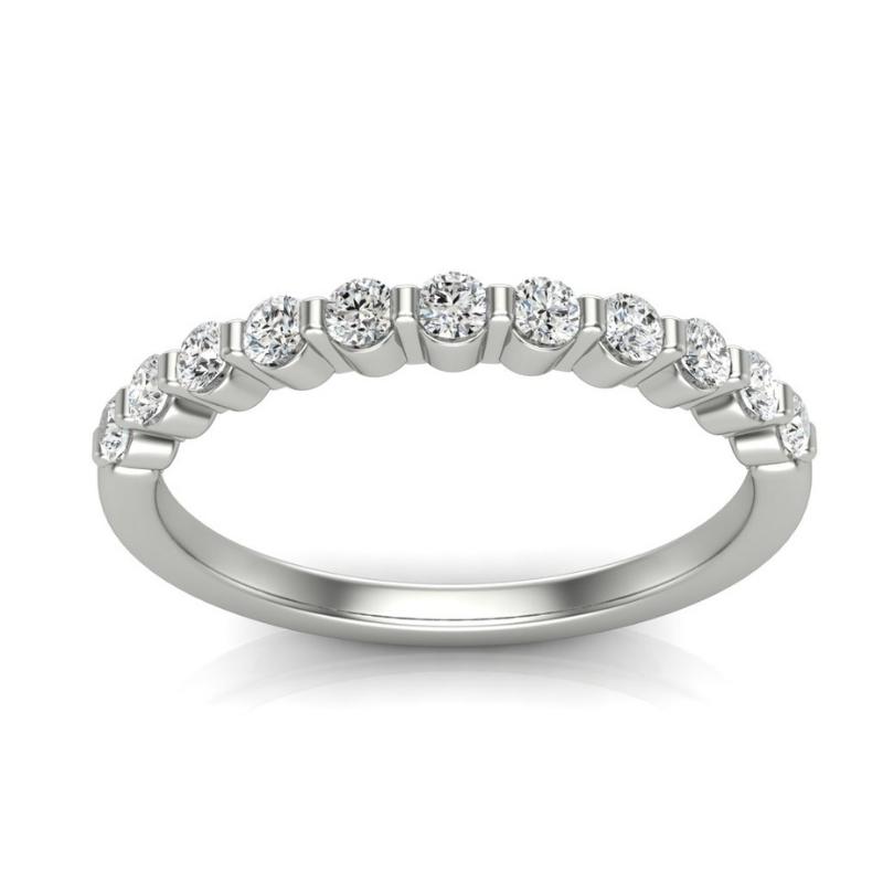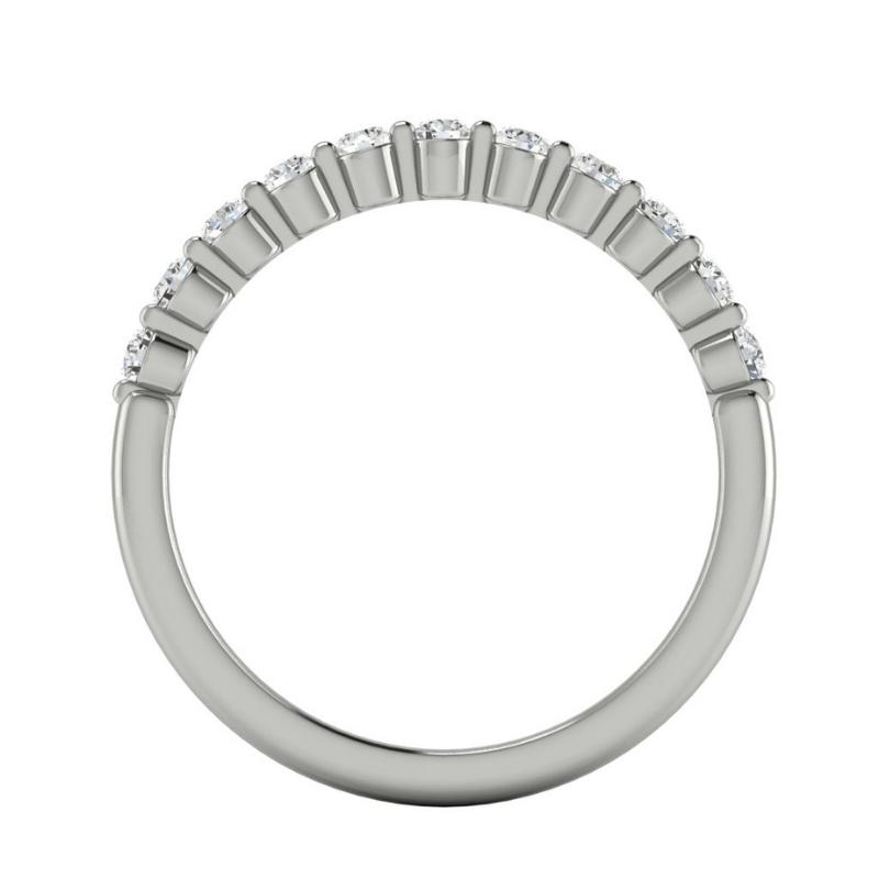 Imagine a piece that’s timeless, with clean-cut lines that speak of refined sophistication. The allure of this band lies not just in its sparkle but in its capacity to adapt. It pairs seamlessly with other rings, adding an enchanting layer to your collection, or it stands proudly on its own, a testament to your distinctive style.