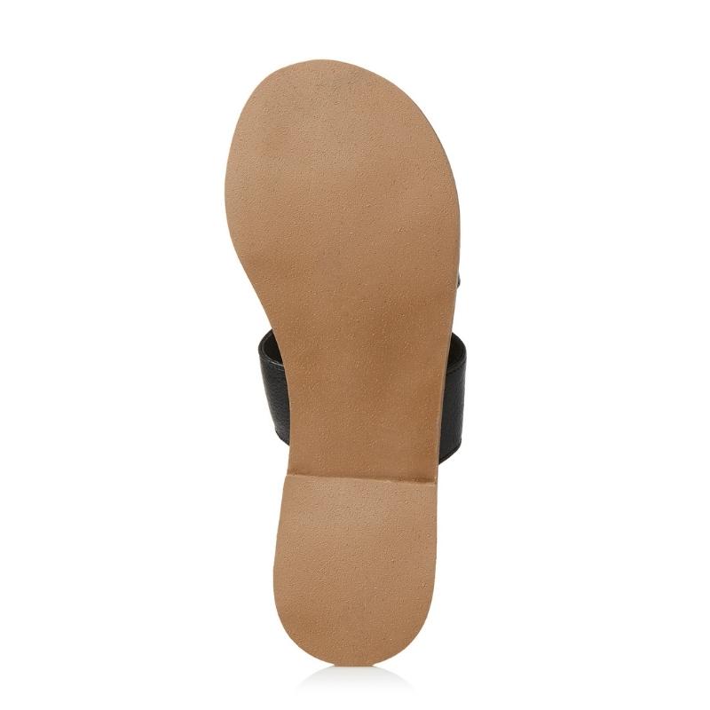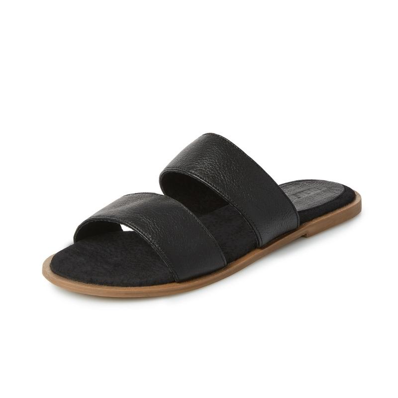 Ladies Broad Strap Leather Sandals – Black