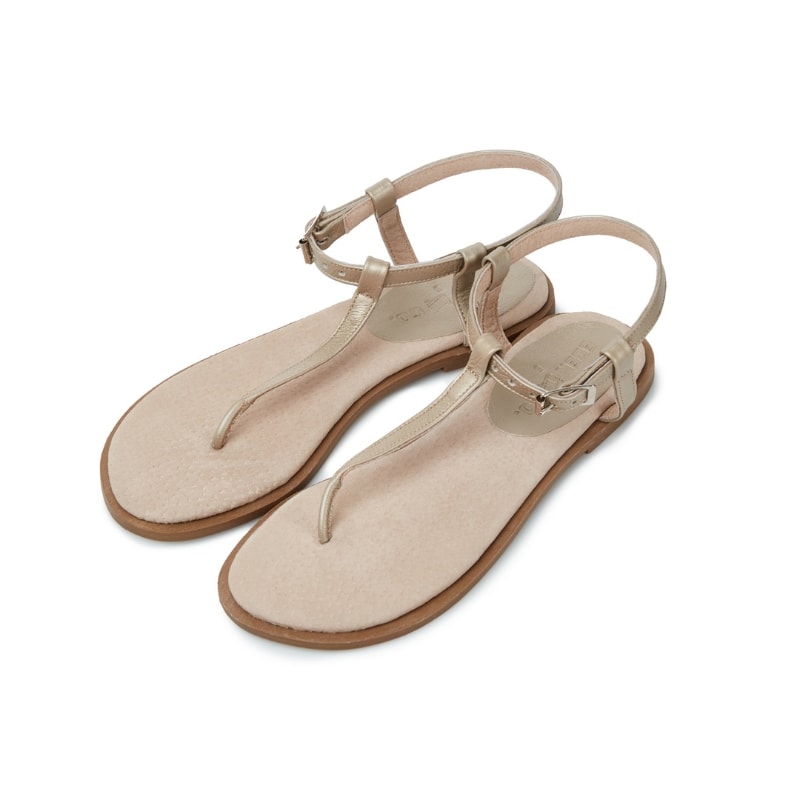 Ladies Toe Post Leather Sandals – Champagne Gold