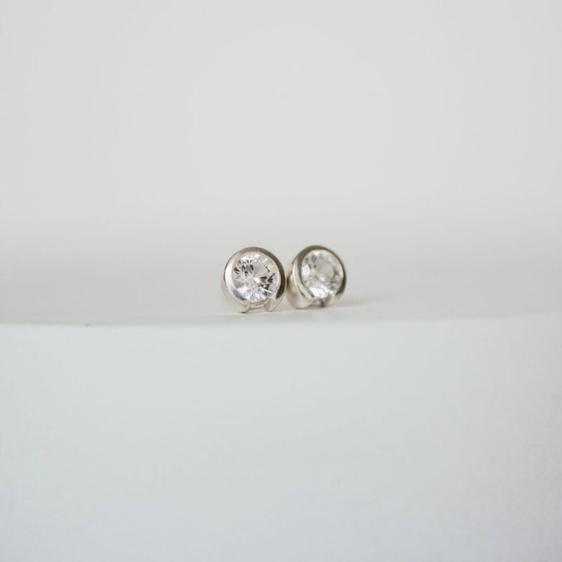 The Leap of Faith Stud Earrings feature 5mm Moissanites set in an open curve design. A symbol of courage and the leap of faith it takes to begin something new.