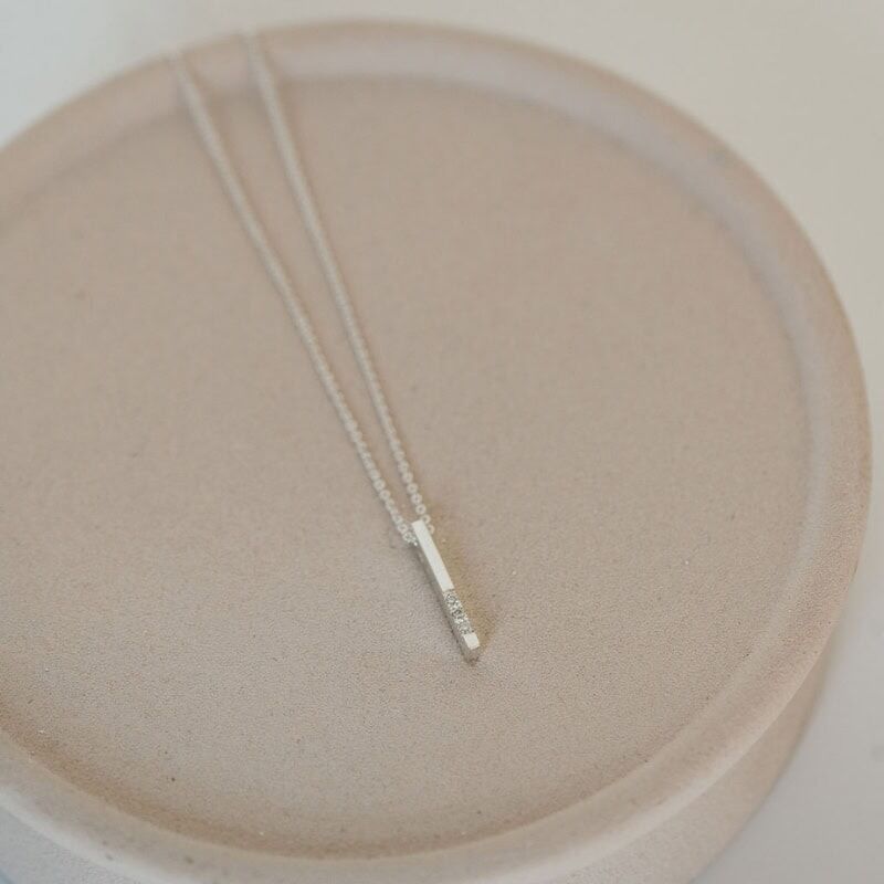 The Legacy Necklace features an 18mm bar pendant that can be set with up to five 1.5mm stones – one for each child. Choose birthstones for a personalised design, or moissanites for a simpler, classic look. A modern piece that carries the story of your children close to your heart.