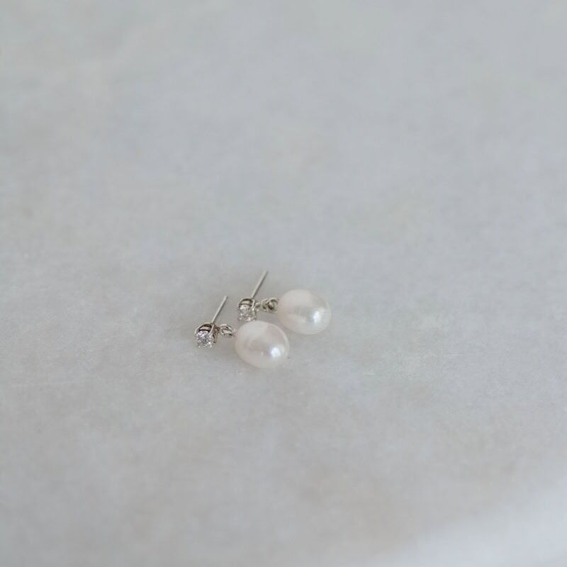 The Milestone Pearl Earrings feature 3 mm diamonds or moissanites set in a four-claw collet, with a 10-12 mm pearl suspended below. Elegant earrings that mark moments of meaning and milestones worth remembering.