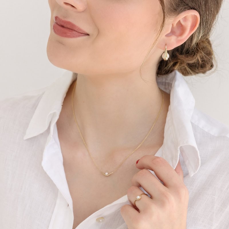 The My Shepherd Ring features a band with a V-shaped curve handmade from 9k gold or sterling silver 925, with a round freshwater pearl nestled at the center of the curve. Just as the pearl is cradled within the curve of the band, so we are cherished and safeguarded by our Shepherd.