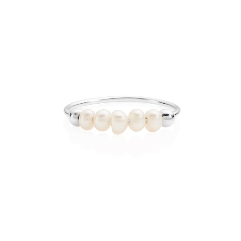 Our Petite pearl ring is handmade with five natural seed pearls on a slim silver band. Seed Pearls have been popular in jewellery for centuries, and we take pride in this classy design showcasing the beautiful imperfections of pearls!