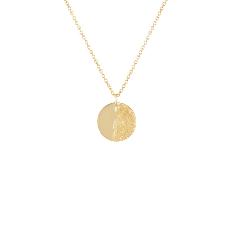 The round 9k gold plate, divided in the middle, with the smooth side on the left and the textured side on the right, represents our tumultuous life smoothed by faith in Christ. The gold in the pendant is genuine and pure (9k gold), reminding us of how clean we are washed by Christ. Now we can appear pure before Him.