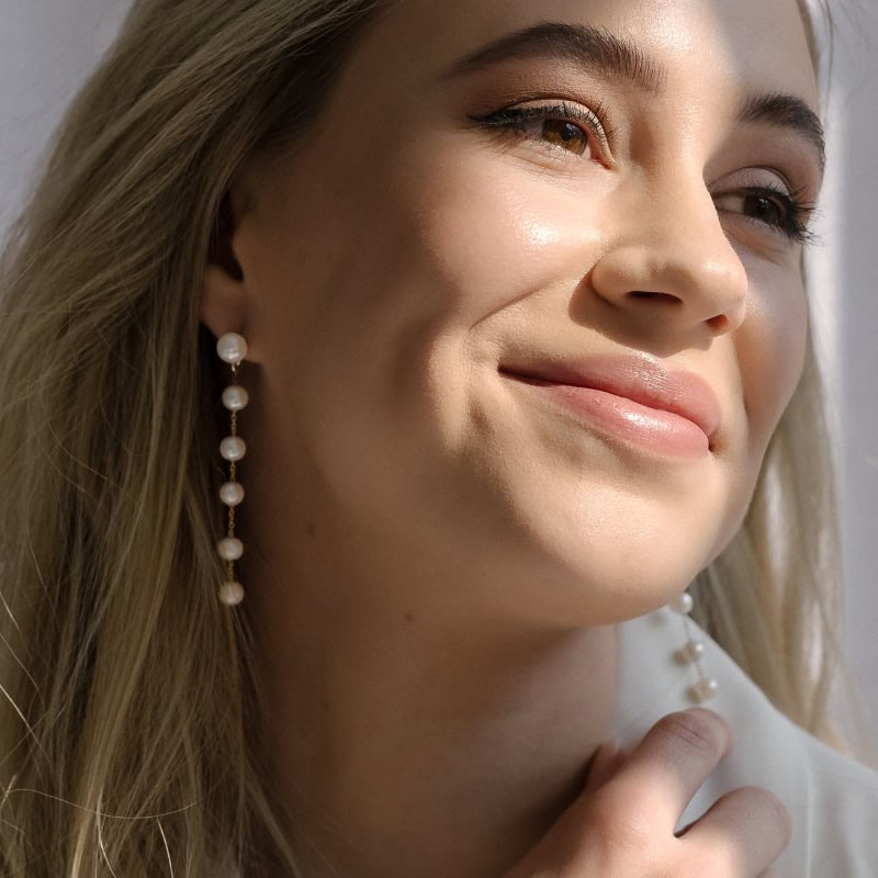 We recommend these earrings with an updo hairstyle and a minimalist dress. Pairing them with our Pearl Bracelet would create a well balanced elegant look.