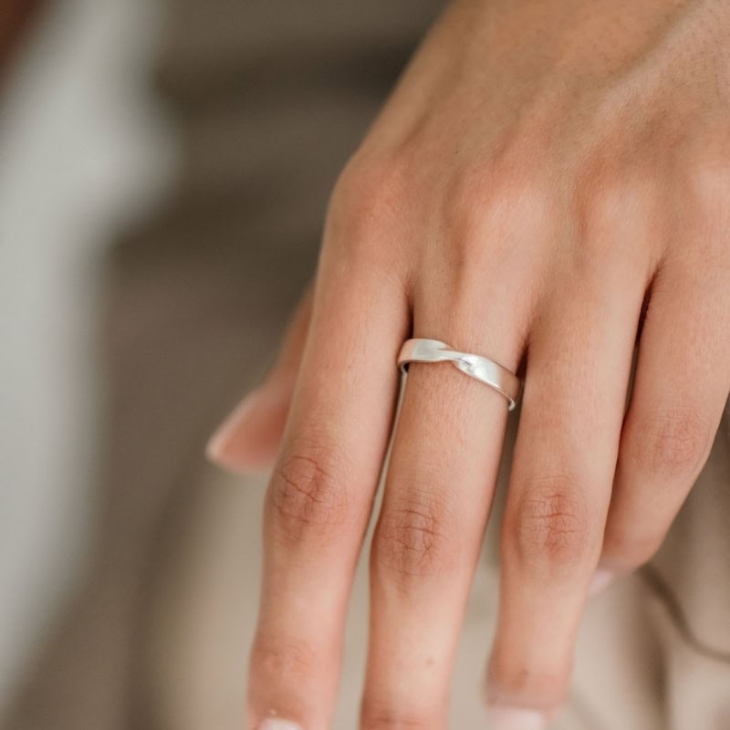 The Connection Ring features a smooth crossover design that forms a single, continuous band. Measuring 3.5 mm in width, it’s simple and refined, representing how two paths can meet and move together as one.
