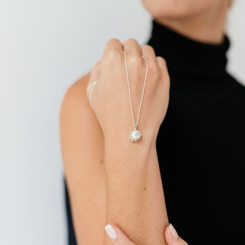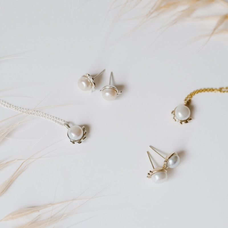 The Waiting Season Necklace consists of freshwater pearls and 9k gold or sterling silver arranged in the shape of a wheat ear around the pearl. May the wheat ears always remind you to trust that God will make everything happen at the right time.